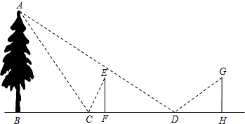 小明想用镜子测量一棵松树的高度,但因树旁有一条河,不能测量镜子与树之间的距离,于是他两次利用镜子,如图所示,第一次他把镜子放在C点,人在F点时正好在镜子中看到树尖A;第二次把镜子放在D点,人在G点正好看到树尖A.已知小明的眼睛距离地面1.70m,量得CD=12m,CF=1.8m,DH=3.8m.请你求出松树的高.
