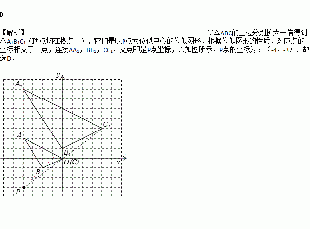 (顶点均在格点上),若它们是以P点为位似中心的位似图形,则P点的坐标是( ).