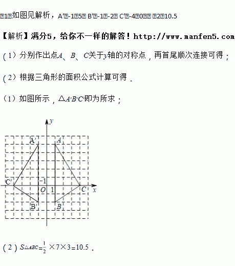 (1)请在图中画出△ABC关于y轴对称的△A′B′C′.