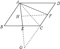 分析 延长AE,DC交于G,连接AC,过F作FH⊥AE于H,根据已知条件推出△ABE≌△GCE,得到GE=AE=3,于是得到S△AEC=S△AFC=S△GEC=$\frac{1}{4}$S四边形ABCD,求出S△AGF=×$6×2\sqrt{3}$=6$\sqrt{3}$,得到S△AEC=$\frac{1}{3}$S△AGF=2$\sqrt{3}$,即可得到结果.