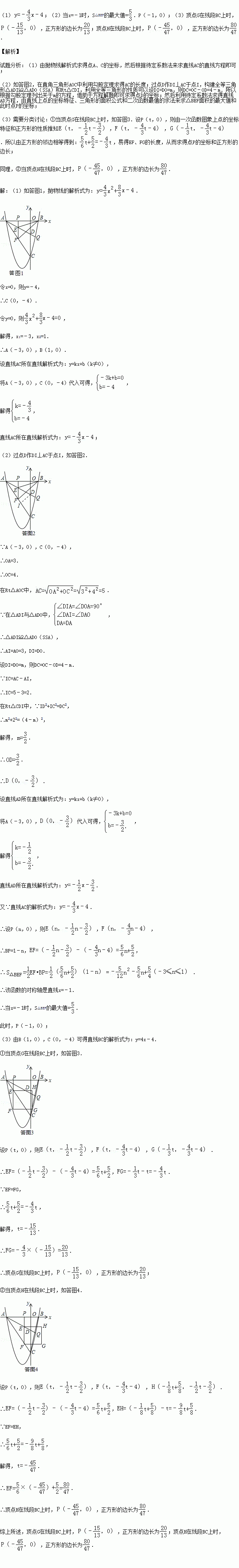 (3)如图2,以EF为边,在它的右侧作正方形EFGH,点P在线段AB上运动时正方形EFGH也随之运动和变化,当正方形EFGH的顶点G或顶点H在线段BC上时,求正方形EFGH的边长.