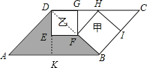分析 连接DF,则B、F、D三点共线,延长DE交AB于点K,则DK⊥AB,可设DE=x,根据∠A=45°,利用平行四边形的性质可知△DEF、△GFH、△HIC、△ADK和△ABD均为等腰直角三角形,可设DE=x,则可用x表示出阴影部分的面积,从而可求得x,可分求得DE、EF、BF、AD、AB的长,从而可求得答案.