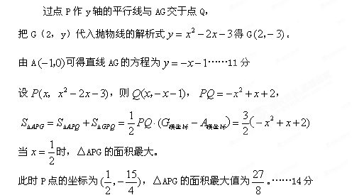 ¡¾Ð¡Ìâ1¡¿Ò×ÇóµÃACµÄ³¤£¬ÓÉÓÚAC³¤Îª¶¨Öµ£¬µ±Pµ½Ö±ÏßAGµÄ¾àÀë×î´óʱ£¬¡÷APGµÄÃæ»ý×î´ó£®¿É¹ýP×÷yÖáµÄƽÐÐÏߣ¬½»AGÓÚQ£»Éè³öPµã×ø±ê£¬¸ù¾ÝÖ±ÏßAGµÄ½âÎöʽ¿ÉÇó³öQµã×ø±ê£¬Ò²¾ÍÇó³öPQµÄ³¤£¬½ø¶ø¿ÉµÃ³ö¹ØÓÚ¡÷APGµÄÃæ»ýÓëPµã×ø±êµÄº¯Êý¹ØÏµÊ½£¬¸ù¾Ýº¯ÊýµÄÐÔÖÊ¿ÉÇó³ö¡÷APGµÄ×î´óÃæ»ý¼°PµãµÄ×ø±ê£¬¸ù¾Ý´Ëʱ¡÷APGµÄÃæ»ýºÍAGµÄ³¤£¬¼´¿ÉÇó³öPµ½Ö±ÏßACµÄ×î´ó¾àÀ룮