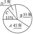 A组所占的百分比是$\frac{90}{200}$×100%=45%,