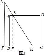 ③当MN经过AB的中点时,根据BE=1,求出BM的长,求出y的值;