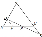 分析 过D作DF平行于AE,利用两直线平行同位角相等,确定出BD=DF,再利用两直线平行内错角相等得到两对角相等,再由AB=AC,利用等边对等角得到一对角相等,等量代换及等角的补角相等得到一对角相等,再由DP=EP,利用AAS得到三角形DPF与三角形EPC全等,利用全等三角形对应边相等得到DF=EC,等量代换即可得证.