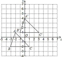 解:(1)如图所示:A′(0,4)、B′(-1,1)、C′(3,1);