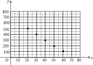 ∴$\left\{\begin{array}{l}{500=20k+b}\\{400=30k+b}\end{array}\right.$,解得$\left\{\begin{array}{l}{k=-10}\\{b=700}\end{array}\right.$,