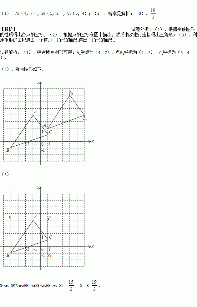 (1)平移后的三个顶点坐标分别为:A1( ),B1( ),C1( );