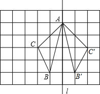 如图在长度为1个单位长度的小正方形组成的正方形中,点A,B,C在小正方形的顶点上.画出关于l成轴对称图形的△AB′C,五边形ACBB′C′的周长为