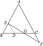 分析 作ED∥AC交BC于D,根据平行线的性质得到∠BDE=∠ACB,∠GED=∠F,∠EDG=∠FCG,由等腰三角形的性质得到∠B=∠ACB,等量代换得到∠B=∠BDE,于是得到BE=ED.推出△GED≌△CFG,根据全等三角形的性质得到结论.