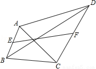 在四边形ABCD中,对角线AC⊥BD且AC=6、BD=8,E、F分别是边AB、CD的中点,则EF= .