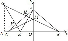 (3)由垂直的性质及∠MBO=30°就可以求出∠G=15°,过G作GN⊥x轴交x轴于点N,则在Rt△GNK、Rt△GNB、Rt△KOA和Rt△BOM中可得出三者的关系.
