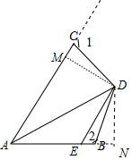 解答 解:如图,作DM⊥AC于M,DN⊥AB于N.![]()