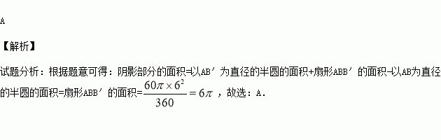 如图,直径AB为6的半圆O,绕A点逆时针旋转60°,此时点B到了点B′,则图中阴影部分的面积为 ( )