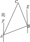 分析 根据题意和方向角的概念求出△ABC是等腰直角三角形,求出AC的长和∠FAC的度数即可.