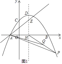 【解析】(1)先求出E的横坐标,等于D的横坐标,即h值,再把A坐标代入抛物线解析式求出k;(2)由“Q为PH的中点”可知△APQ与△AHP是同高等底三角形,面积相等,因此可用t的代数式表示S△AHP,再乘以