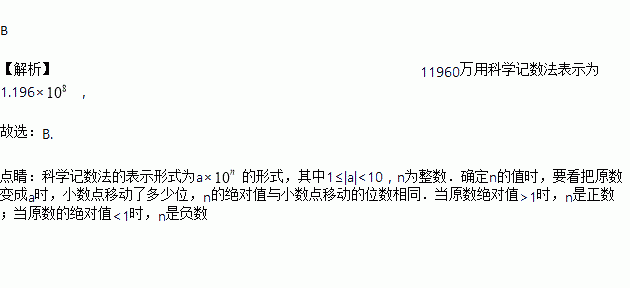 A. 1.196×109 B. 1.196×108 C. 1.196×104 D. 11.96×108