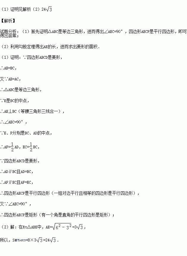 如图,已知菱形ABCD,AB=AC,E、F分别是BC、AD的中点,连接AE、CF.