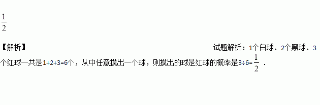 一个不透明布袋里装有1个白球、2个黑球、3个红球,它们除颜色外均相同.从中任意摸出一个球,摸出的球是红球的概率为_____________.
