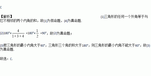 ⑷三角形的一个外角等于和它不相邻的两个内角的和