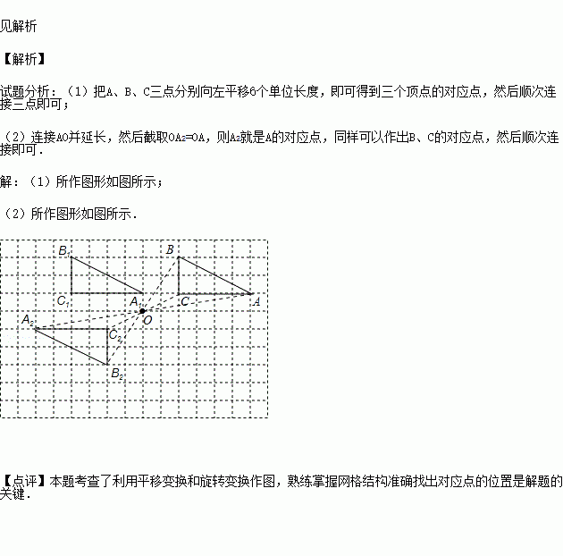 (1)将△ABC向左平移6个单位得到△A1B1C1,请画出△A1B1C1;
