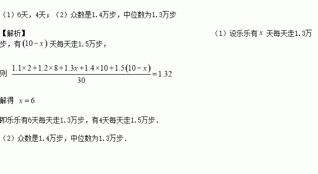 (1)若乐乐这个月平均每天健步走的步数为 1.32 万步,试求她走 1.3 万步和 1.5 万步的天数;