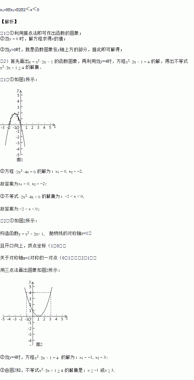 ①构造函数,画出图象:根据不等式特征构造二次函数y=﹣2x2﹣4x;并在下面的坐标系中(图1)画出二次函数y=﹣2x2﹣4x的图象(只画出图象即可).