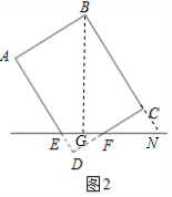 (2)如图2,延长BC交直线EF于N,过B作BG⊥EF于G,根据已知条件得到DF=5$\sqrt{3}$cm,∠EFD=30°,求得∠CFN=30°,CF=18-5$\sqrt{3}$,解直角三角形即可得到结论.
