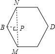 作BP⊥MN于点P,那么∠MBP=60°,