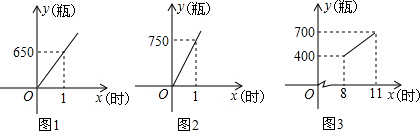 绍兴黄酒是中国名酒之一.某黄酒厂的瓶酒车间先将散装黄酒灌装成瓶装黄酒,再将瓶装黄酒装箱出车间,该车间有灌装、装箱生产线共26条,每条灌装、装箱生产线的生产流量分别如图(1)、(2).某日8:00~11:00,车间内的生产线全部投入生产,图(3)表示该时间段内未装箱的瓶装黄酒存量变化情况,则灌装生产线有