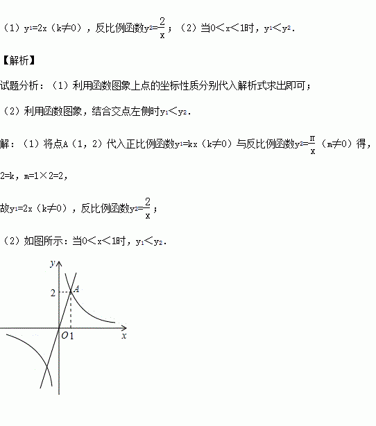 (2015•郴州)如图,已知点A(1,2)是正比例函数y1=kx(k≠0)与反比例函数y2=