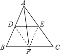 分析:(1)连接DF,EF,根据点D,点E,点F分别是AB,AC,BC边上的中点可知EF∥AB,EF=