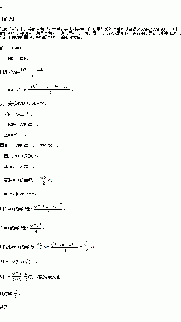 (2015秋•河西区期中)如图,点E、F、G、H分别在菱形ABCD的四条边上,BE=BF=DG=DH,连接EF,FG,GH,HE,得到四边形EFGH,若AB=a,∠A=60°,当四边形