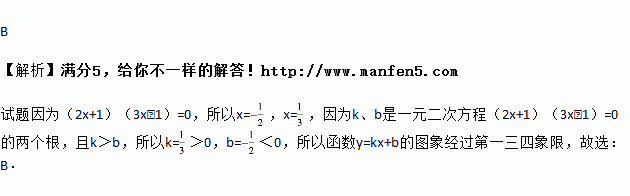 已知k、b是一元二次方程(2x+1)(3x﹣1)=0的两个根,且k>b,则函数y=kx+b的图象不经过( )