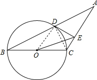 分析 (1)首先连接OD,CD,由以BC为直径的⊙O,可得CD⊥AB,又由等腰三角形ABC的底角为30°,可得AD=BD,即可证得OD∥AC,继而可证得结论;