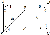 如图,在矩形ABCD中,AF、BE、CE、DF分别是矩形的四个角的角平分线,E、M、F、N是其交点,