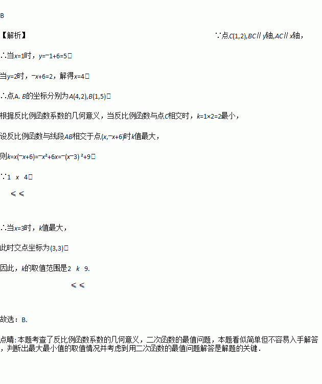 如图,过点C(1,2)分别作x轴、y轴的平行线,交直线y=-x+6于A,B两点,若反比例函数