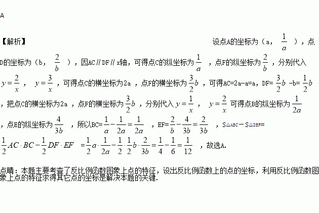 在第一象限的图象上,若∠C=∠F=90°,AC∥DF∥x轴,BC∥EF∥y轴,则S△ABC-S△DEF=( )