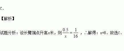 如图,铁路道口的栏杆短臂长1m,长臂长16m.当短臂端点下降0.5m时,长臂端点升高(杆的宽度忽略不计)( )