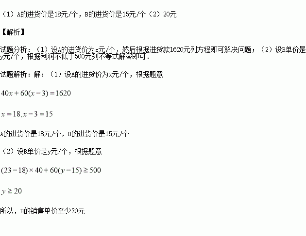 (1)求A、B两种文具盒的进货单价;