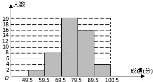 | 分组 | 49.5-59.5 | 59.5-69.5 | 69.5-79.5 | 79.5-89.5 | 89.5-100.5 | 合计 |