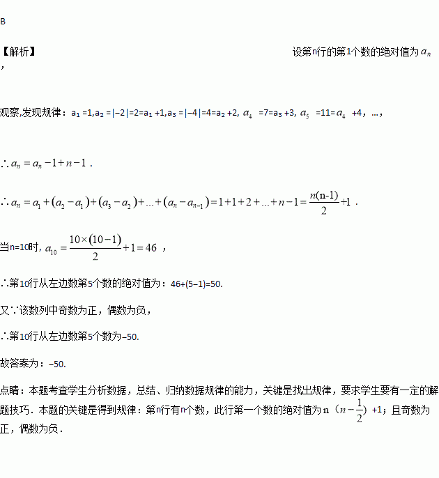 已知一列数:1,―2,3,―4,5,―6,7,… 将这列数排成下列形式: