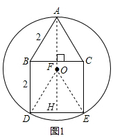 分析 作AF⊥BC,垂足为F,并延长交DE于H点.根据其轴对称性,则圆心必定在AH上.设其圆心是O,连接OD,OE.根据等边三角形的性质和正方形的性质,可以求得AH,DH的长,设圆的半径是r.在直角三角形BOH中,根据勾股定理列方程求解.