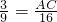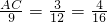 已知一个三角形的三边为9、12、16,△ABC与它相似,其中AB=3,BC=4,那么AC=________.