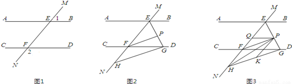(3)如图3,在(2)的条件下,连接PH,K是GH上一点使∠PHK=∠HPK,作PQ平分∠EPK,问∠HPQ的大小是否发生变化?若不变,请求出其值;若变化,说明理由.