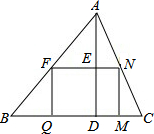 有一块锐角三角形铁片ABC,已知最长边BC=12cm,高AD=8cm,要把它加工成一个矩形铁片,使矩形的一边在BC上,其余的两个顶点分别在AB、AC上,且矩形的长是宽的3倍,求矩形的面积.