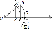 连接OB,以O为圆心,OB长为半径作弧,![]()