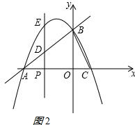 (2)点P从点O出发,以每秒1个单位的速度沿射线OA运动,过点P作x轴的垂线分别交直线AB、抛物线于点D、E.设线段DE的长为d,运动时间为t秒,求d与t的函数关系式,并直接写出自变量t的取值范围;