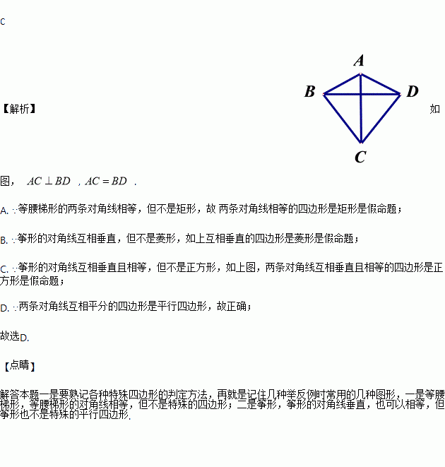 A. 对角线相等的四边形是矩形;